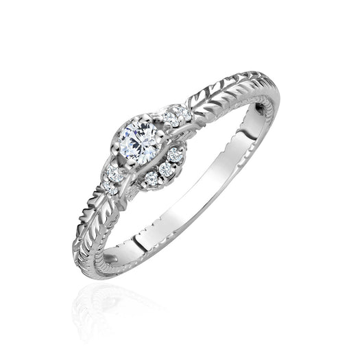 Trop mignonne cette jolie bague de style vintage avec ses gravures sur le corps, en or 10K, jaune ou blanc. Diamants scintillants sont regroupés au...