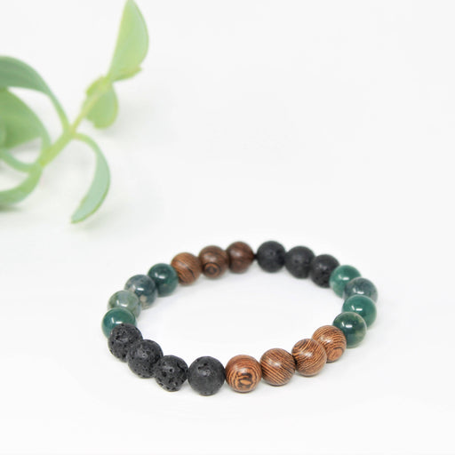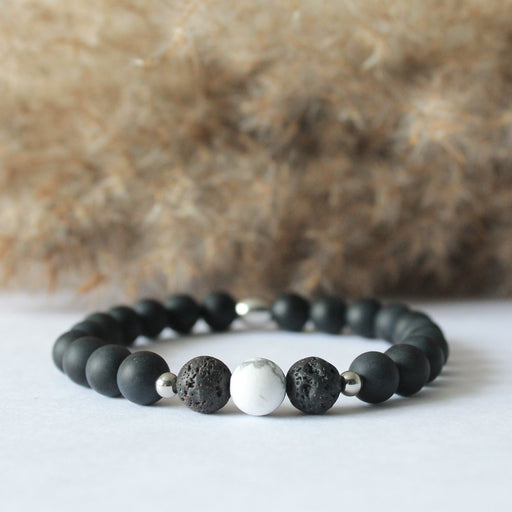 ⤐MATÉRIAUX ET DESCRIPTION : • Pierres naturelles : Onyx, Pierre de lave et Howlite - Rond - 8mm • Fil élastique robuste sans latex • Billes argenté...