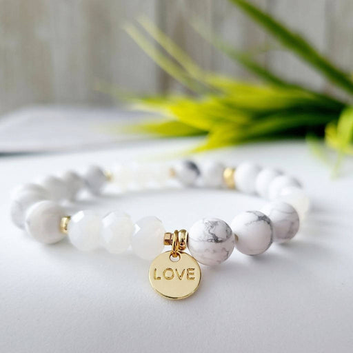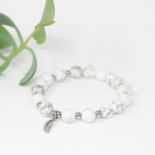Description⤐ MATÉRIAUX ET DESCRIPTION :• Pierres naturelles : Howlite - Rond - 8mm• Fil élastique robuste sans latex• Billes et breloque Plume en a...