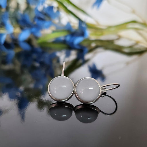 Bijoux Le fil d'ArianeBoucles d'oreilles cabochons d'un beau petit gris perle délicat, passe-partout, je pense que ça va avec TOUT! Disponibles sur les montures argent, ...