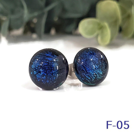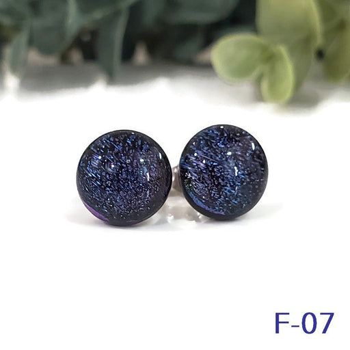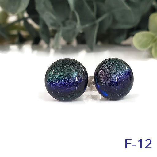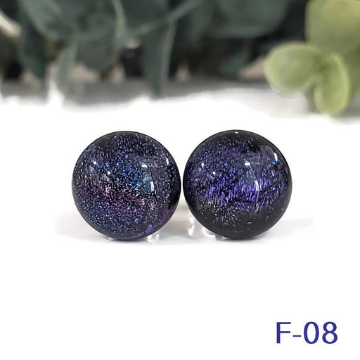 Bijoux Le fil d'ArianeCaractéristiques: Modèle et taille: puces 12 mm Forme: ronde Couleur de face: bleu, craquelé, avec un peu de prune foncé Couleur des reflets: a...