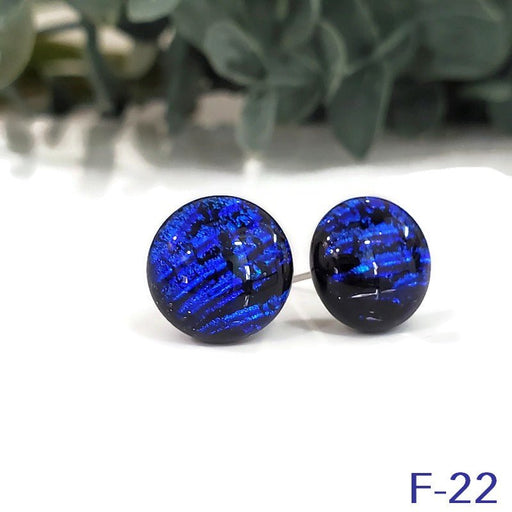 Bijoux Le fil d'ArianeCaractéristiques: Modèle et taille: puces 12 mm Forme: ronde Couleur de face: bleu foncé ligné Couleur des reflets: bleu plus foncé