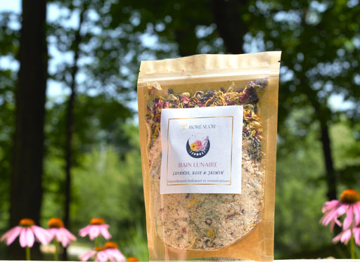 Boréal'Or inc.Un mélange entre sel et poudre de bain, ce sel de bain floral lunaire apaisant et hydratant vous accompagne lors de votre bain.Il apporte les bienf...