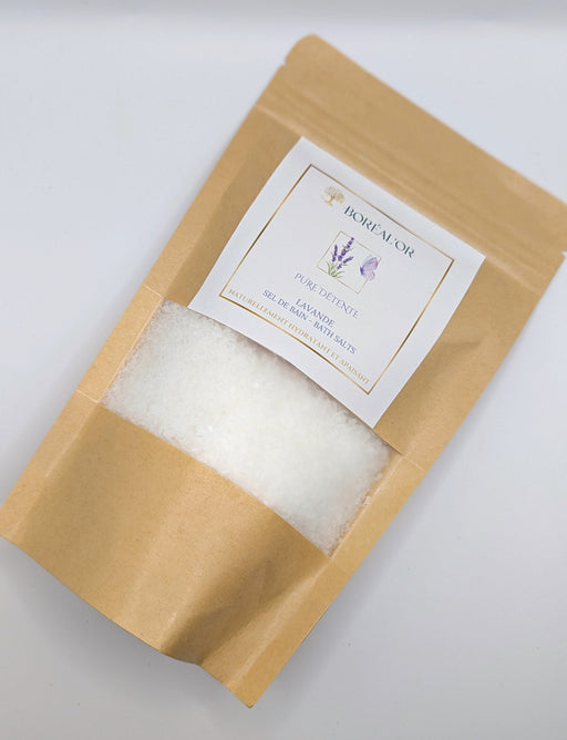 Boréal'Or inc.Sel de Bain Détente et Bien-être avec huile essentielle de Lavande.Offrez-vous un moment de détente avec notre sel de bain relaxant et reminéralisa...
