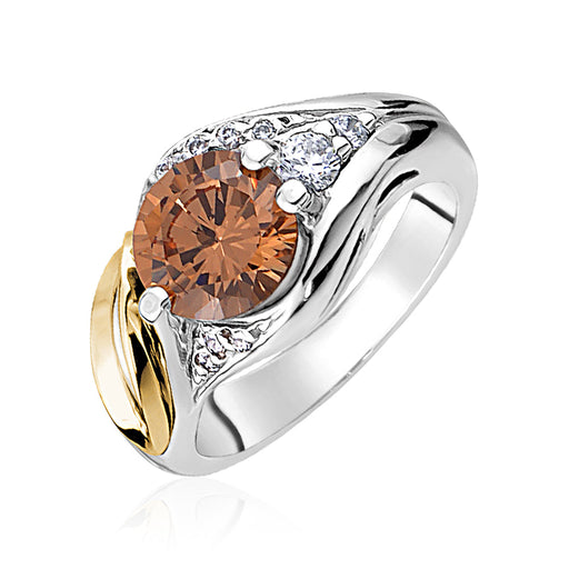 Baron Designs Inc.Superbe bague de type cocktail, en argent .925 avec accent d'or 10K sur les épaules.L'or jaune, blanche ou rose, selon le choix, est poli et la bag...