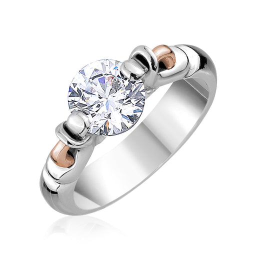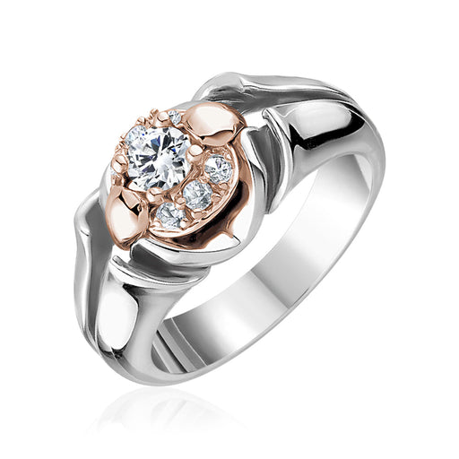 Baron Designs Inc.Bague délicate en argent sterling, avec accent d'or jaune ou rose 10K. Les épaules en or de chaque côté de la pierre centrale peuvent être en or ja...