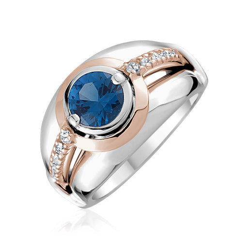 Baron Designs Inc.Que de charmes dans cette bague en argent sterling avec ses accents d’or poli jaune ou rose 10K. Jolie pierre centrale sertie sur griffes et petite...
