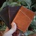 • Mon porte-cartes minimaliste est exactement ce à quoi il ressemble : un moyen simple et pratique de transporter vos essentiels. Fabriqué à la main avec soin à partir d'une seule pièce de cuir qui s'enroule sur elle-même pour créer trois petites poches élégantes. Élégant, mais suffisamment modeste pour ne pas s'en vanter. Peut contenir jusqu'à six cartes.