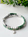 Bracelet délicat en pierres semi-précieuses avec des pierres d'agate verte et des pierres d'howlite. Les pierres mesurent 4mm de diamètre.Il est orné d'une petite perle d'eau douce, d'un petit cristal Swarovski et d'une breloque sertie de cubiques. Facile à enfiler et convient aux poignets de 6.5 po à 7.5 po.