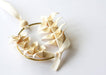 Décoration et Bijou de sapin à la fois - constitué de deux épis de blé pliés dans du papier semi-cartonné blanc selon la technique de l'Origami (l'art japonais du pliage de papier), et ensuite assemblés puis accrochés dans un anneau de métal doré. Cet ornement est prêt à être placé sur votre sapin grâce à son attache sous forme de ruban. C'est une décoration unique et élégante pour la période des Fêtes et au-delà, ainsi qu'une attention parfaite pour vos proches.