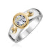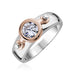 Une magnifique bague solitaire, très tendance avec son look européen. Conçue en argent sterling, anti-ternissage, et des accents d'or poli 10K, en rose ou en jaune.