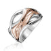 Cette création est large et imposante avec ses courbes entrecroisés qui lui confèrent son look très populaire et les accents d'or, sa richesse. Disponible avec des pierres blanches synthétiques (Erö), en argent sterling seulement (Ramuns) et en or avec diamant de laboratoire (Vergüngen).