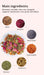 Sodium Bicarbonate (Bicarbonate de soude), Citric Acid (acide citrique), Magnesium sulfate (sel d'Epsom), sodium lauryl sulfoacetate (tensioactif doux qui donne de la mousse), Corn starch (fécule de maïs), Kaolin clay (argile kaolin), Witch Hazel water (eau d'hamamélis), Persea gratissima (huile d'avocat), Shea butter (beurre de karité), Potassium bitartrate (donne du fizz), Essential oils (huiles essentielles), Certified dye powder (colorants certifiés pour le bain), dried flowers (fleurs séchées).