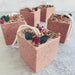 Termes INCI saponifiés: Sodium olivate, sodium cocoate, sodium palmate, sodium sunflowerate, sodium shea butterate, sodium castorate, aqua, sodium lactate, rose french clay, Rosehips powder, essentialis olea, ultramarine pink oxide, dried flowers.