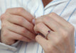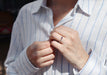 - La bague de fiançailles est sertie d'une émeraude ou d'un saphir de 4 mm.