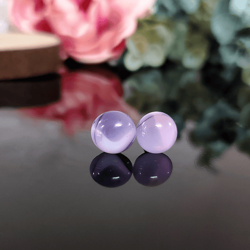 Bijoux Le fil d'ArianeBoucles d'oreilles complétant l'ensemble Coeur rose et mauve. Elles font environ 10 mm de diamètre.Merci de noter que de part sa nature, le verre ...