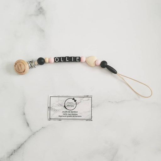 Création cocolyly inc.Attache suce avec silicone et bois.