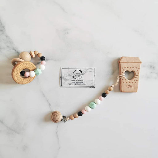 Création cocolyly inc.Hochet, jouet et attache suce bois et silicone.