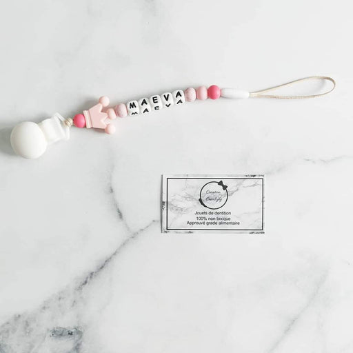Création cocolyly inc.Modèle d'attache suce prénom déjà établi, écrit simplement le prénom souhaitez.