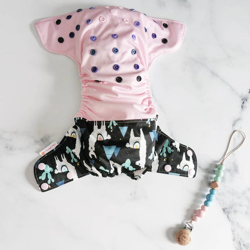 Marque et produit conçu au Québec et confectionné à l’étranger35.99$Duo couche lavable et attache suce lama