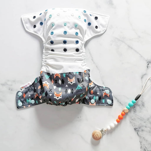 Marque et produit conçu au Québec et confectionné à l’étrangerÀ partir de 45.99$Duo couche lavable et attache suce renard