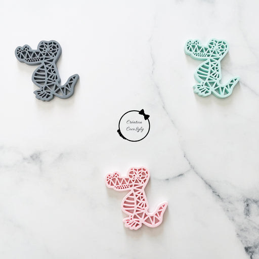 Création cocolyly inc.Lapin de silicone sur anneau de bois.