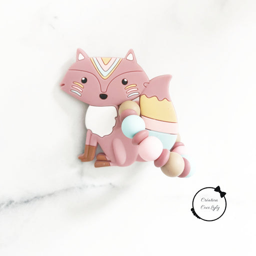 Marque et produit conçu au Québec et confectionné à l’étranger23.99$Hochet de dentition avec jouet en silicone renard rose profond