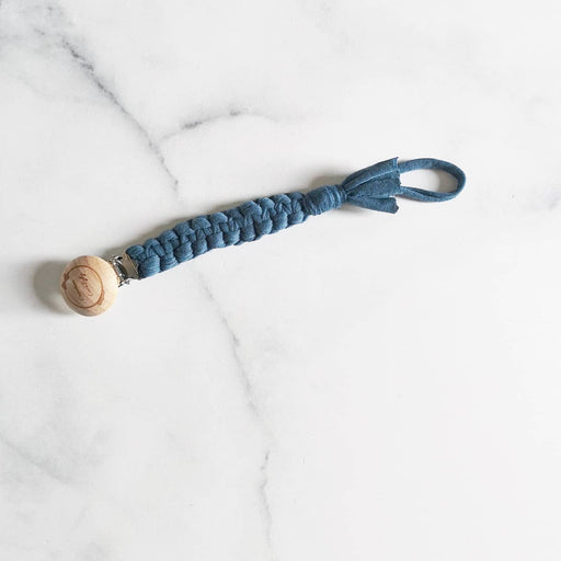 Marque et produit conçu au Québec et confectionné à l’étranger15.99$Attache suce tressé bleu saphir