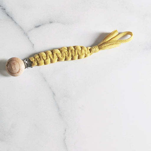 Marque et produit conçu au Québec et confectionné à l’étranger15.99$Attache suce tressé jaune moutarde