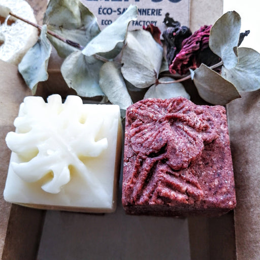 Marque et Produit créé et confectionné au Québec29.00$Coffret - shampoing exotica & revitalisant solides - cheveux foncés