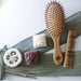 shampoing et revitalisant solides, un peigne et une brosse écologique