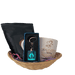 The set includes: a coffee cup, a 200g bag of ground coffee or flavored beans of the barista's choice with a keychain.