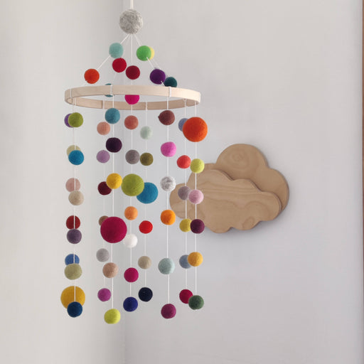 Bulle et BallonCe joli mobile multicolore en boules de laine feutrée sera parfait pour la décoration de la chambre de bébé ou les chambres d'enfants. Ce mobile s...