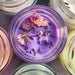 - Bougie décorée minutieusement avec des fleurs/herbes séchées naturelles et parfois avec des colorants pour chandelles