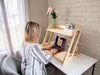 Nul besoin de retirer le meuble de votre bureau, il peut y rester en permanence et répond à tous vos besoins en étant ajustable avec ses 8 différents paliers. Les tablettes sont munie d’une fente pour votre téléphone cellulaire, iPad, tablette ou crayons.