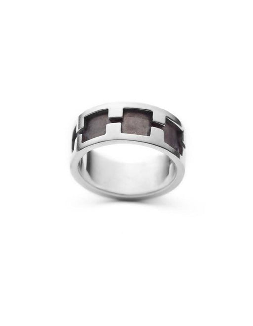 Bijouterie Dominic Dufour JoaillierJonc en argent 925 oxydé de style moderne, orné d'un motif géométrique carré.Un bijou unisexe idéal pour une occasion spéciale comme un anniversair...
