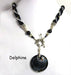Le collier Delphine est composé de mes couleurs préférées, le noir avec une combinaison d’argent et de perles de verre or va avec à peu près tout!