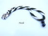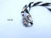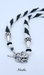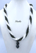 Il est composé de perles noir transparent avec insertion de perles blanches et le pendentif qui est de perles noires transparentes.