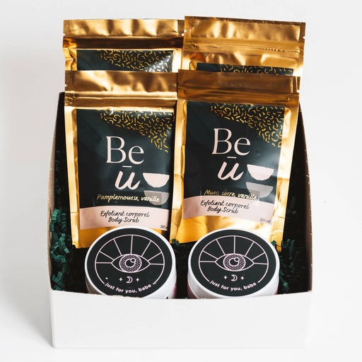 Be-u CosmétiquesBoîte découverte #3 - Les choix du Chef (Variées) :Envie d’essayer nos exfoliants dans toutes les senteurs ? Nous t’avons concocté une boîte compre...