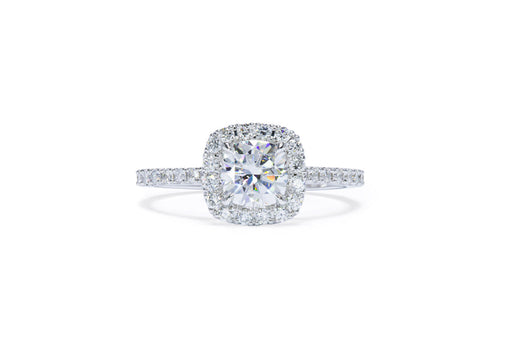Flamme en roseLes particularités de ce bijou Bague de fiançailles semi-éternité. Halo de 16 diamants autour d'un diamant coussin de 0.9 carat. La pierre principa...