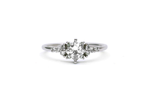 Flamme en roseLes particularités de ce bijou Bague de fiançailles en forme étoilé avec 13 diamants. La pierre centrale est un diamant princesse. Pierres montées ...