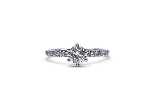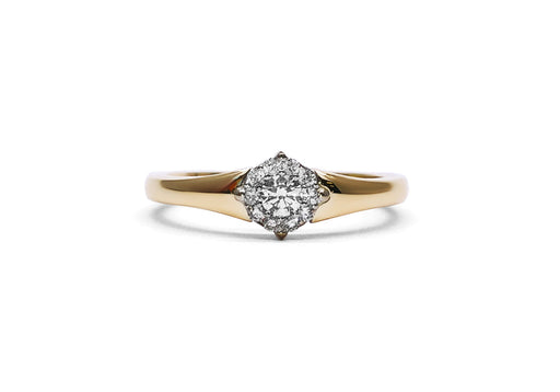 Flamme en roseLes particularités de ce bijou Bague de fiançailles avec 10 petits diamants autour d'un diamant de 3 mm. Donne l'effet d'un solitaire avec un gros ...