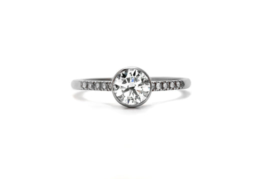 Flamme en roseLes particularités de ce bijou Un serti clos protège tout en finesse la pierre centrale. Choisissez entre les diamants naturels ou créés en laborat...