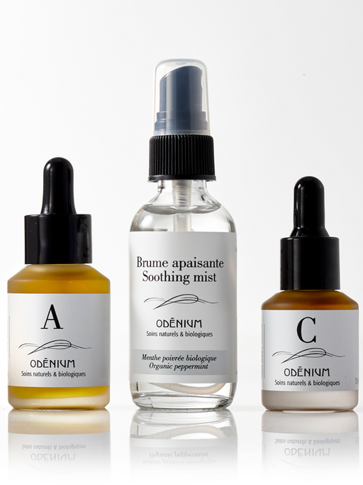 Odénium Soins Naturels et BiologiquesUN KIT COMPLET POUR LE RITUEL DU MATIN : LE RASAGE, LA BRUME APAISANTE ET LE SÉRUM HYDRATANT APRÈS RASAGE. Le trio : Huile de rasage, Brume apaisan...