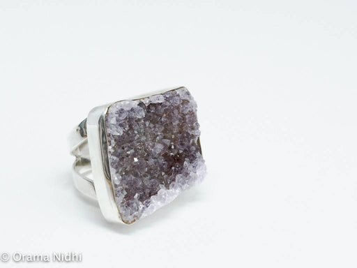Orama NidhiBague en argent 925, sertie d'une druse d'améthyste. L'améthyste est dans les tons de mauve.Conçue par la designer montréalaise Carole Morand, cett...
