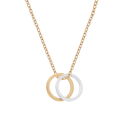 PrysmCollier double cercles avec finition matteDouble plaqué argent, or et or rose 16k100% hypoallergéniqueChaîne : 46cm + 5cmDiamètre du pendentif : 1c...