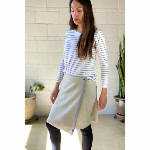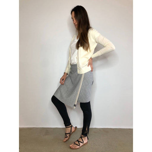 Marque et Produit créé et confectionné au Québec149.00$Tukuan la jupe polyvalente aux genoux taille unique grise