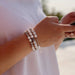 - Nous utilisons un fil élastique robuste et suffisamment extensible pour pouvoir aisément enfiler et enlever votre bracelet. Cependant, ne tirez pas davantage sur le bracelet afin de préserver sa longévité.