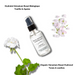 1- Après avoir nettoyé / démaquillé votre visage, vaporisez à 15 cm de votre visage la Brume Apaisante de Géranium Rosat Biologique et appliquez votre soin hydratant ou traitant.