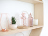 - Matériaux / cloche standard: Cloche en verre avec socle en bois clair, Papier à motif, Fil métallique, Liège.